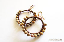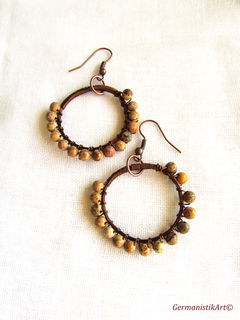 The earrings are created from 4 mm picture jasper beads and jewelry wire.
