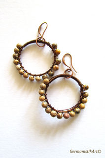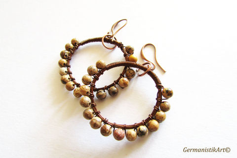 Picture Jasper Round Earrings, Gemstone Round Dangle Earrings, Wire Wrapped Hoop Earrings, DIY Dangle Earrings