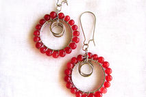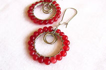 Red Agate Round Earrings, Gemstone Round Earrings, Wire Wrapped Earrings, DIY Semiprecious Earrings