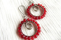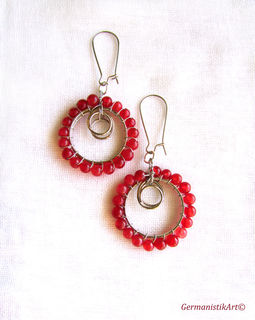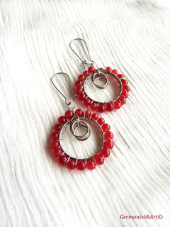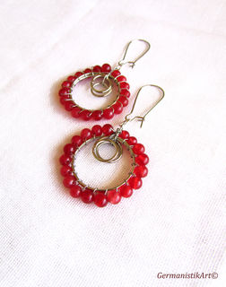 The earrings are created from 4 mm red agate beads and silver jewelry wire (NF metal ring).