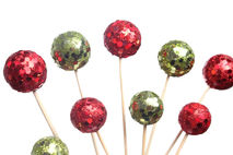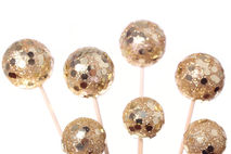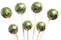 Large glitter ball is 1 inch in diameter and sits on a 4 inch wooden food pick.