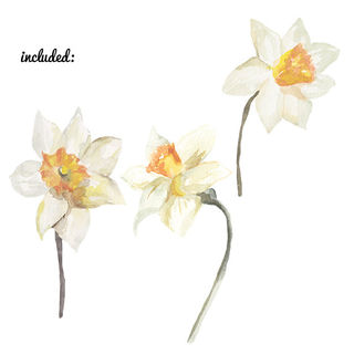 I hand paint every image myself, and I love the spontaneity that comes with watercolors. Nature takes over at some point and it’s up to the water how the pigments will arrange themselves. It’s especially fascinating to see the pigments when I scan my images and I love to zoom in on my scans and discover new things about what I have made. I picked some Jonquils from the Brooks art museum right next to my house. They were so beautiful I had to make them into clip art- and I was so excited about the coming of spring that I was really inspired!