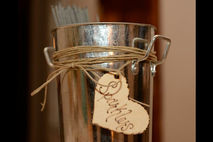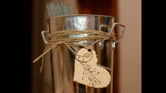 Use this cute tall bucket with wood burned label for just about anything:)