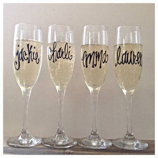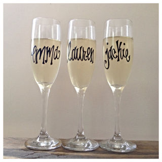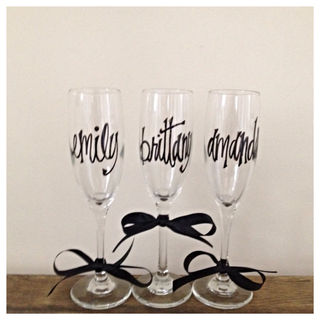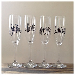 Personalized bridal party glasses for your bridal party. These are perfect for thank you gifts and to use on the day of your wedding while you are getting ready.