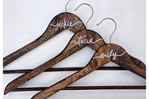 These wooden hangers are stained with a beautiful walnut color and antiqued for a rustic look!
