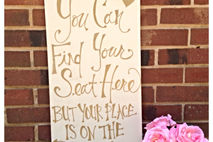 "You can find your seat here but your place in on the dance floor" sign is perfect for your seating chart table or place card table.