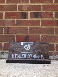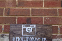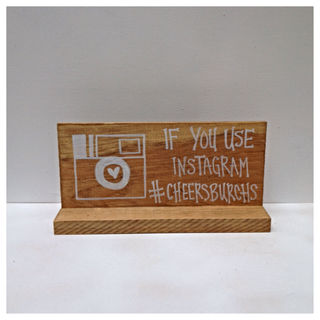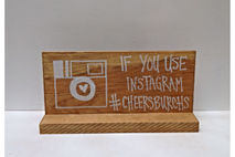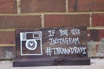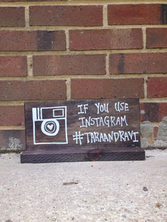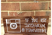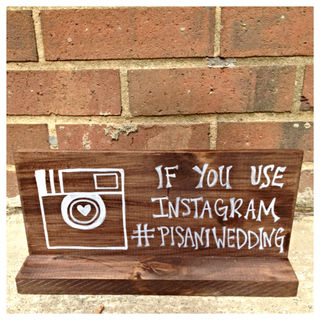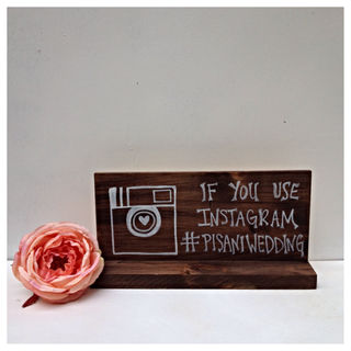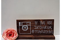 Stained wooden table top wedding "If you use instagram hashtag" sign.