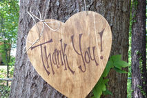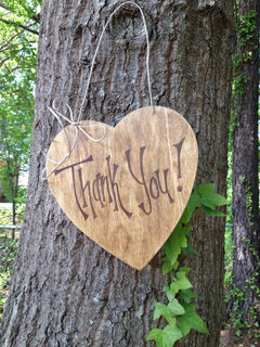 This heart is stained a golden oak color and hand painted in brown lettering.