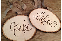 Dress up your outdoor restrooms with some rustic signs that match your theme!