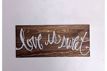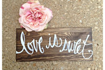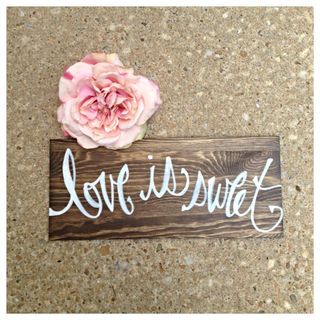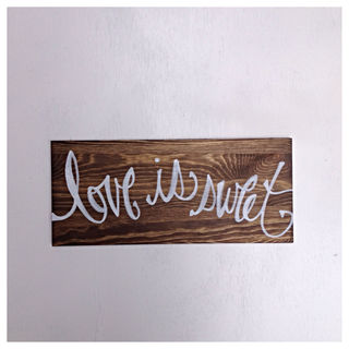 Hand painted white with the words love is sweet to place at your ceremony, tables or anywhere at your wedding.