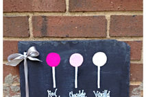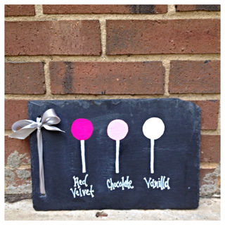This is an adorable slate sign hand painted with cake pops colors and flavors!