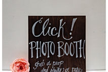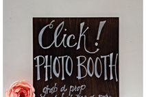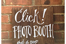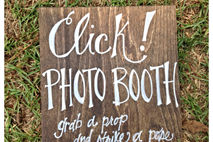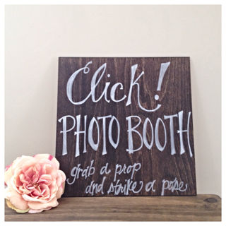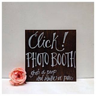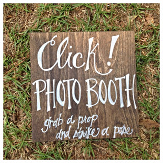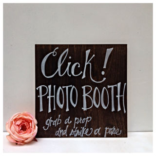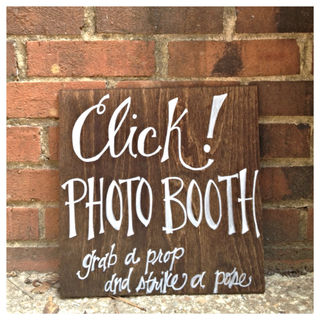 This rustic sign is hand painted and and customizable! Click! photo booth sign. "Grab a prop and strike a pose"