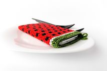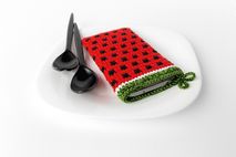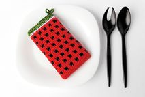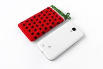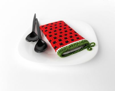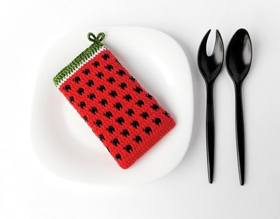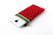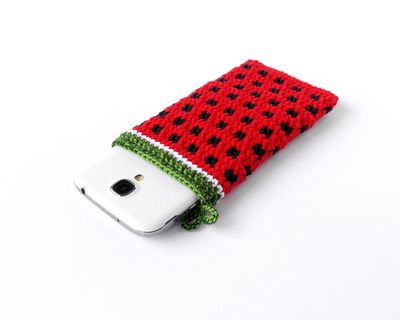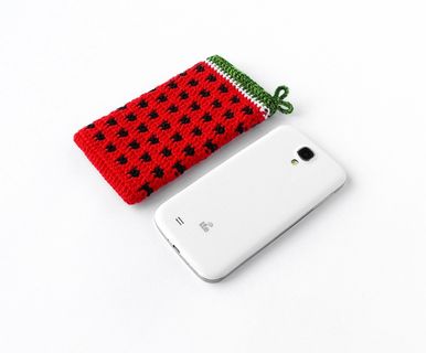 If you like watermelons not only in your plate, this playful design is just perfect for you. I crocheted this cellphone case of pure red, black and white cotton and green acrylic yarn in attractive dot pattern.