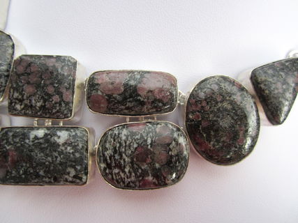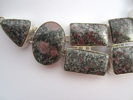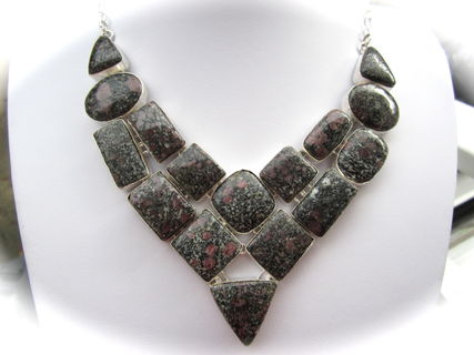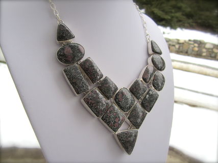 This particular necklace holds natural ruby in black spinel crystal stones. It is what is known as a matrix. The stones in this necklace have been lightly polished to leave it at its more natural element. These stones have been Earth-mined.