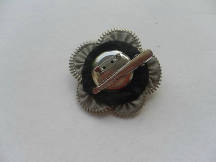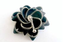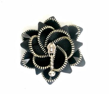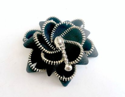 Vintage zippers are creatively transformed into beautiful brooches. The metal teeth highlight the colorful tapes creating a stunning affect. Completely handsewn,