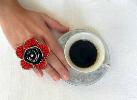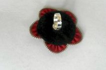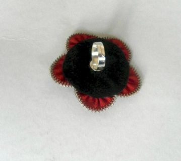 Flower Ring, Zipper jewelry, Black and Red, plated silver ring .YKK Zipper-Ring is adjustable. eco friendly, recycled jewelry