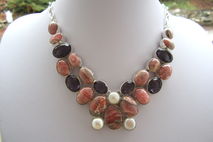 The centre pearl and rhodochrosite stones measure 1-1/4" long, from top to bottom.