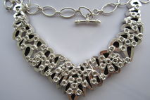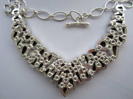The main center stones measure 1-3/8" long from top of necklace to bottom point. It measures 3-5/8" from center to end of one side of necklace.