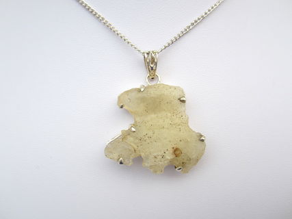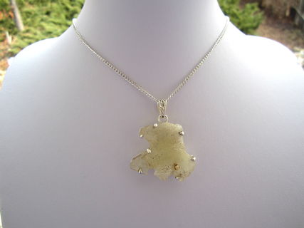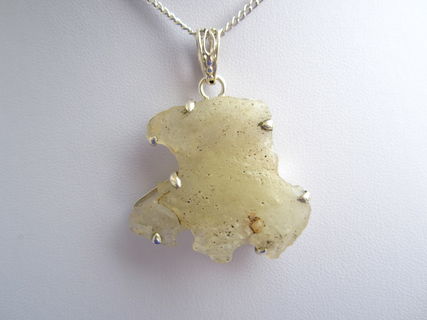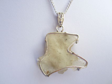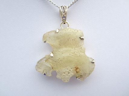 We are so pleased to offer this high quality .925 sterling silver libyan desert glass pendant! The stone itself is a large, substantial tektite! It looks like it has a crack on the bottom left, but this is just a superficial natural fissure and is not cracked at all.
