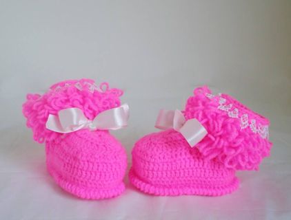 These booties are crocheted baby soft acrylic yarn. Great gift choice to any little princess.