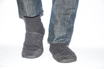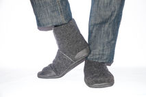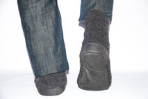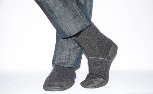 MATERIALS USED: MyMen Slipper Socks are handmade from dark gray 100% Cashmere sweaters, hidden 100% Merino Wool or Lambswool sweaters, and dark gray suede leather apparel.