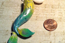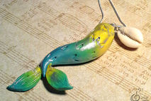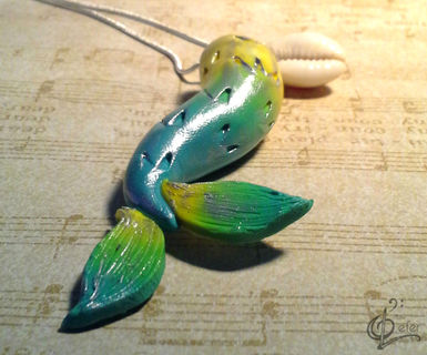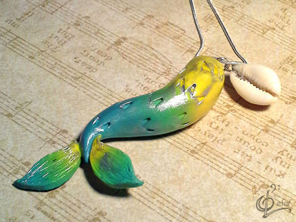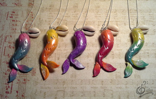 This listing is for a polymer clay pink and light blue enchanted mermaid tail necklace. It has been hand sculpted with the utmost precision and detail and then coated with a glossy shimmer glaze. This unique necklace will add a unique flair to any outfit!