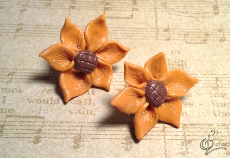 This listing is for a polymer clay sunflower post earring studs. It has been hand sculpted with the utmost precision and detail and then coated with a glossy glaze. These unique earrings will add a unique flair to any outfit!
