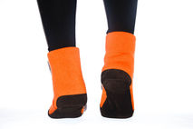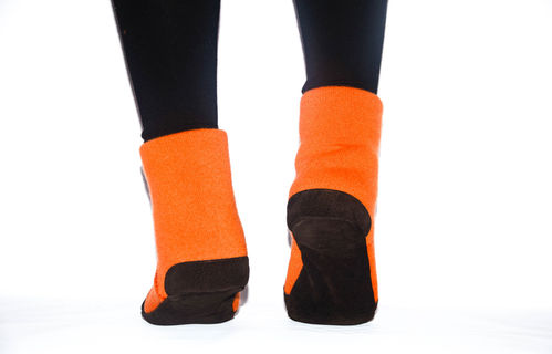 MATERIALS USED: My Unisex Slipper Socks are handmade from Orange 100% Cashmere sweaters, hidden 100% Merino Wool or Lambswool sweaters and dark brown suede leather apparel.