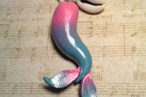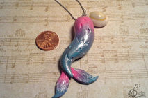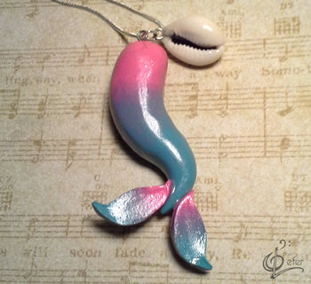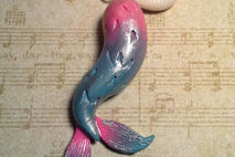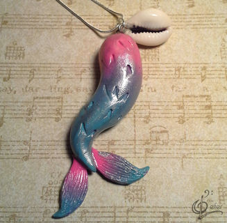 This listing is for a polymer clay pink and light blue enchanted mermaid tail necklace. It has been hand sculpted with the utmost precision and detail and then coated with a glossy shimmer glaze. This unique necklace will add a unique flair to any outfit!