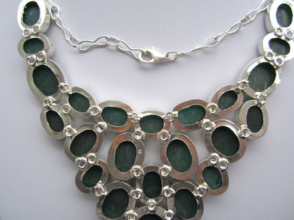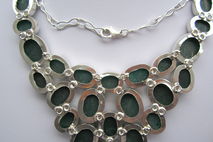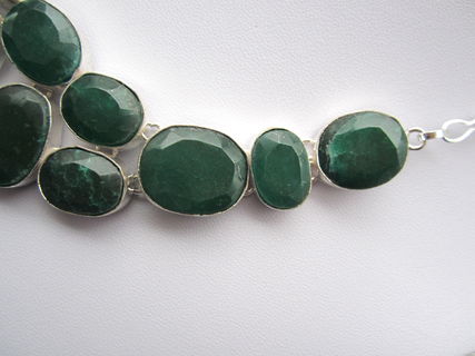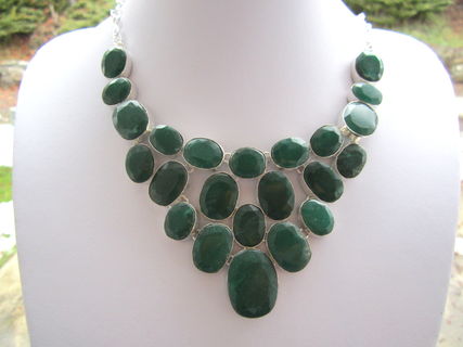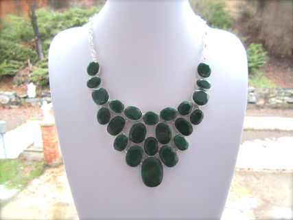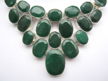 This particular necklace holds lovely emerald gemstones. These are Earth mined but have been dyed to be a uniform colour. They are just gorgeous. The necklace is set in high quality sterling silver plating.