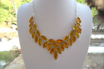 The stones in the necklace are set in high quality sterling silver plating and the chain and lobster claw clasp are chrome covered lead. The necklace is meant to wear around the thymus or heart area.