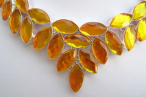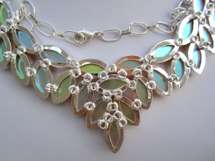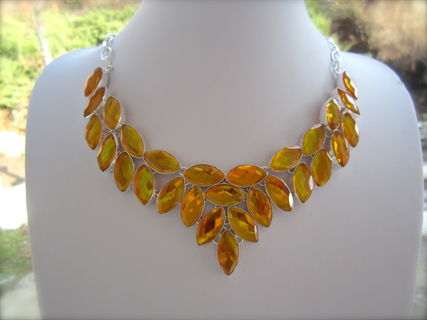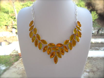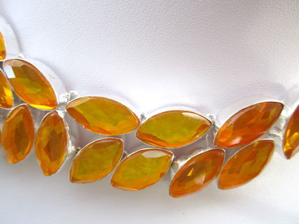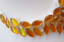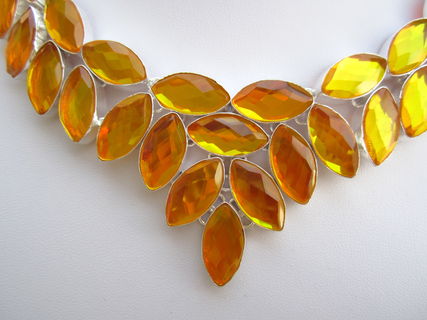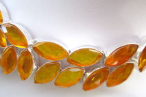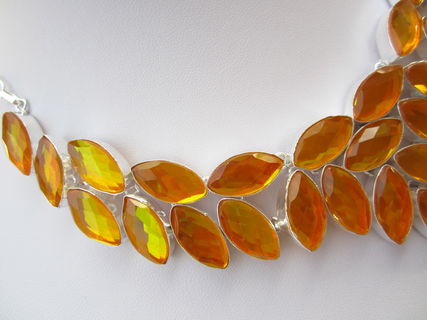 This is a rainbow topaz necklace given a fun orange look to it. The topaz stones are lab grown and they have each been placed onto rainbow foil paper and completely sealed with sterling silver plating. The foil just gives them a cool orange rainbow colour!