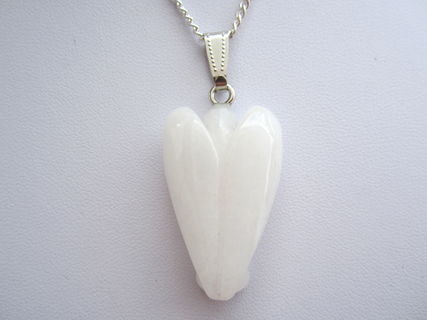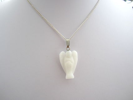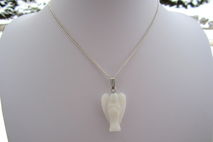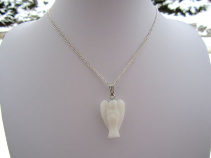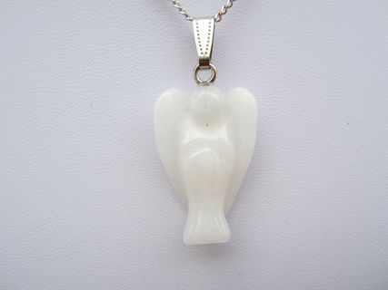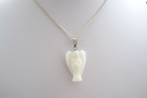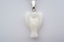 This is a pendant that holds a lovely, polished white agate carved angel stone. It has a brass silver finish pendant bail on it so you can hang it on a chain - which allows for a more inexpensive option for you.