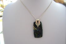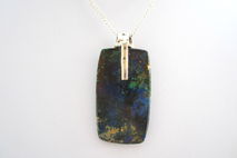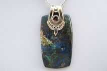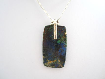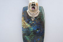 The azurite pendant measures 2" long, including bail, and is 1" at its widest.