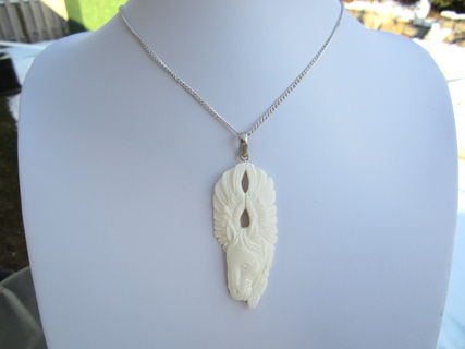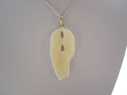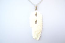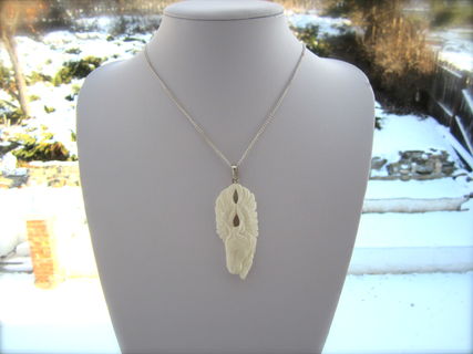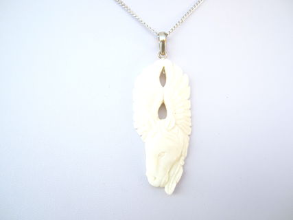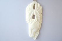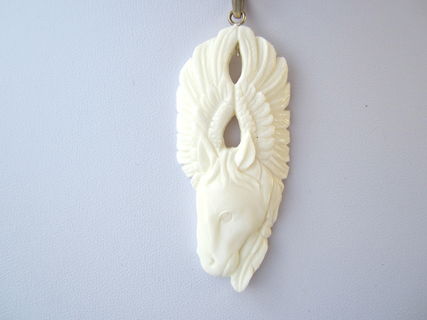 This is a pendant that holds a lovely, polished carved pegusus on natural buffalo bone. The animal died a natural death and it is not associated with pain. When I hold this pendant, I am pleasantly pleased to see how this pendant is connected to guardian angels. It has a brass silver finish pendant bail on it so you can hang it on a chain.