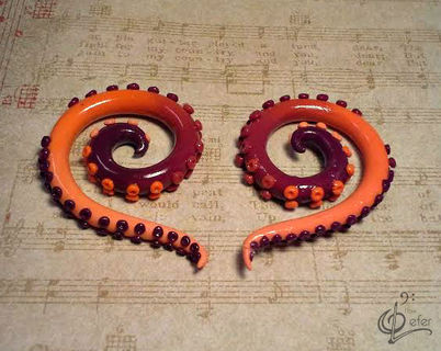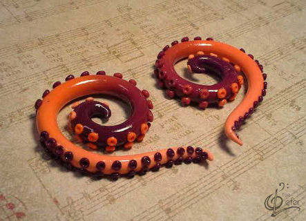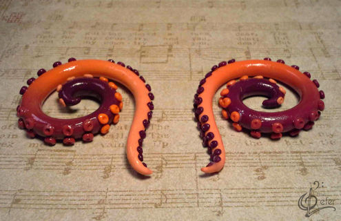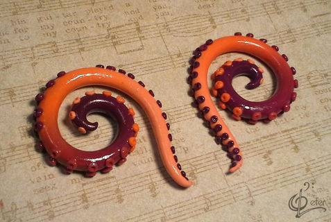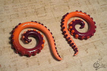 This listing is for a pair of ombre tentacle gauges. Each has been hand sculpted, baked, and glazed in a glossy coat.