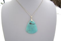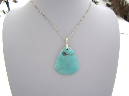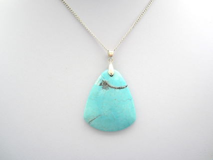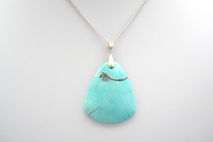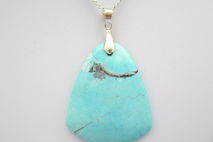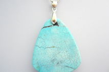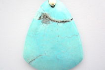 This is a pendant that holds a lovely, polished howlite stone that has been dyed a baby blue to make it look like turquoise. It has the same lovely howlite energies that I love. It has a brass silver finish pendant bail on it which allows for a more inexpensive option.