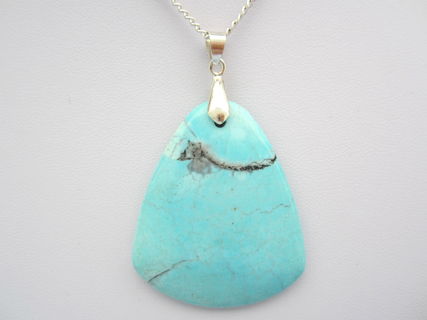 This blue howlite pendant measures 2-3/8" long, including bail, and 1-1/2" wide.