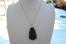 This lapis lazuli pendant measures 2-3/8" long including bail, and is 1-1/8" at its widest.