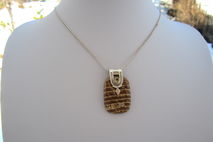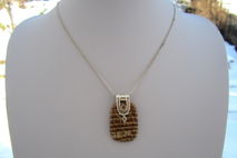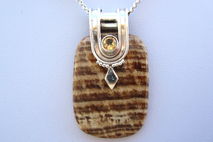 This aragonite and citrine pendant measures 1-5/8" long, including bail, and 1" wide.
