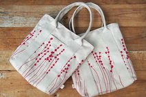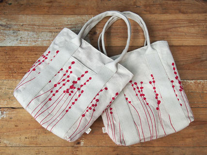 The handbag is lined with soft washed cotton in red and the handles are made from 100% hemp.