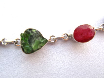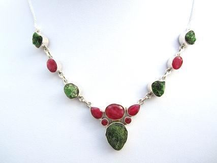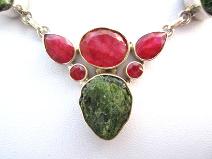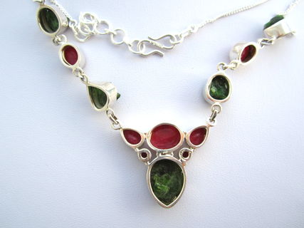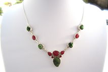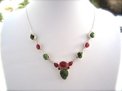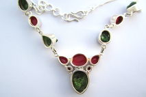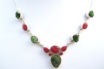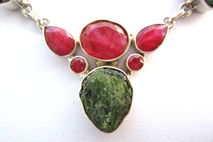 This particular necklace holds lovely natural Indian rubies and rough emerald gemstones. These are Earth mined but have been dyed to be a uniform colour. They are just gorgeous. The necklace has such lovely energies. Very peaceful too!