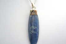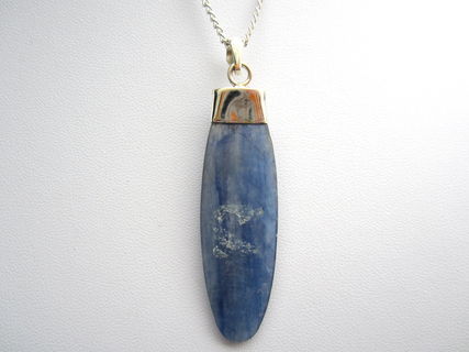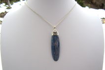 This kyanite pendant measures 2-3/8" long, including bail, and is just over 5/8" at its widest.