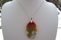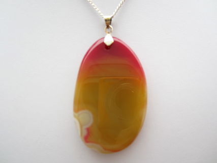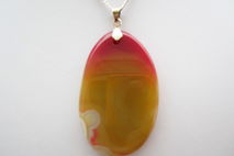 This agate pendant measures 2-7/8" long, including bail, and 1-1/2" at its widest.