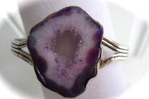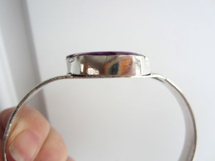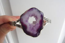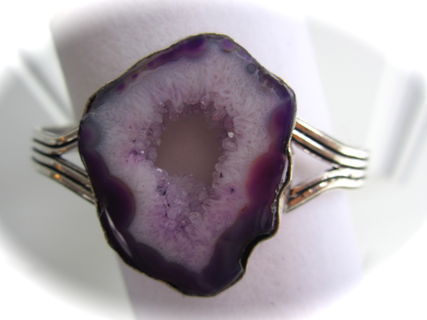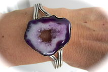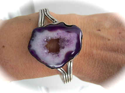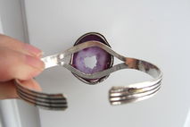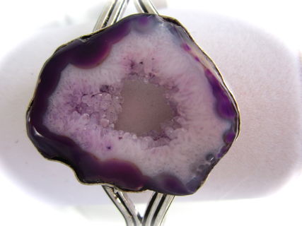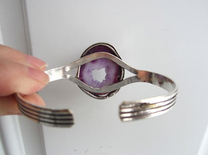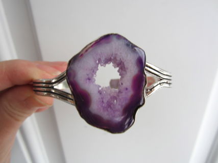 This pretty bracelet contains a large purple and white solar agate quartz druzy crystal stone. You can see the little crystals in the druzy! This stone is set in silver tone metal.