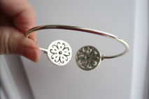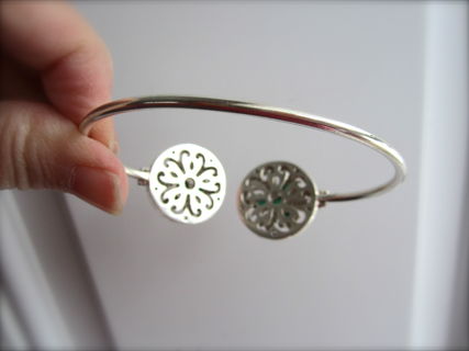 The bracelet is 2-3/4" x 2-1/8". Each 'round' is 1" in diameter.