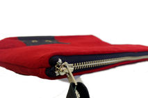 Bag features grey or black cotton lining, YKK zipper, leather tassel pull and a slight attitude problem. Bag comfortably fits large smart phone, sunnies, credit cards and all your treasured secrets you wish to hold dear. Can be used as a wallet or a quick getaway clutch. Can also be found as the topic of conversation for several gawking onlookers when taken out into public. Meow.