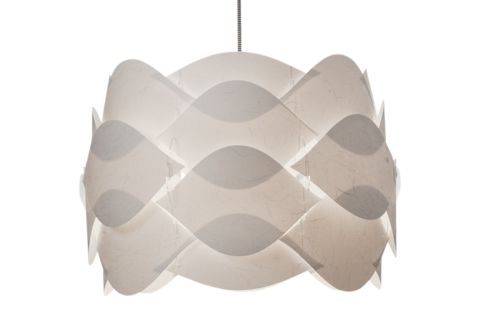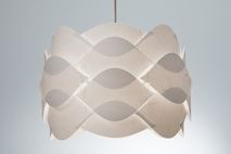 Modern lamp made of laminated paper. It captivates with lightness and beautiful light. Smooth, harmonious shape of the lamp provide the perfect ambience in the interior. The warm light will make staying pleasurable.