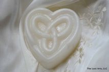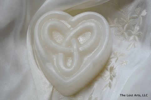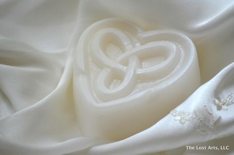 This beautiful Celtic heart is handcrafted from glycerin soap and contains shea, mango, and cocoa butters for extra moisturizing. It is softly fragranced with the clean, light scent of cotton blossoms.