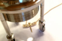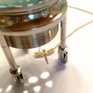 The goldsmithed dragonfly is so exquisitely wrought you'd swear it could land on water or maneuver forward and backward with it's two delicate pairs of wings.
